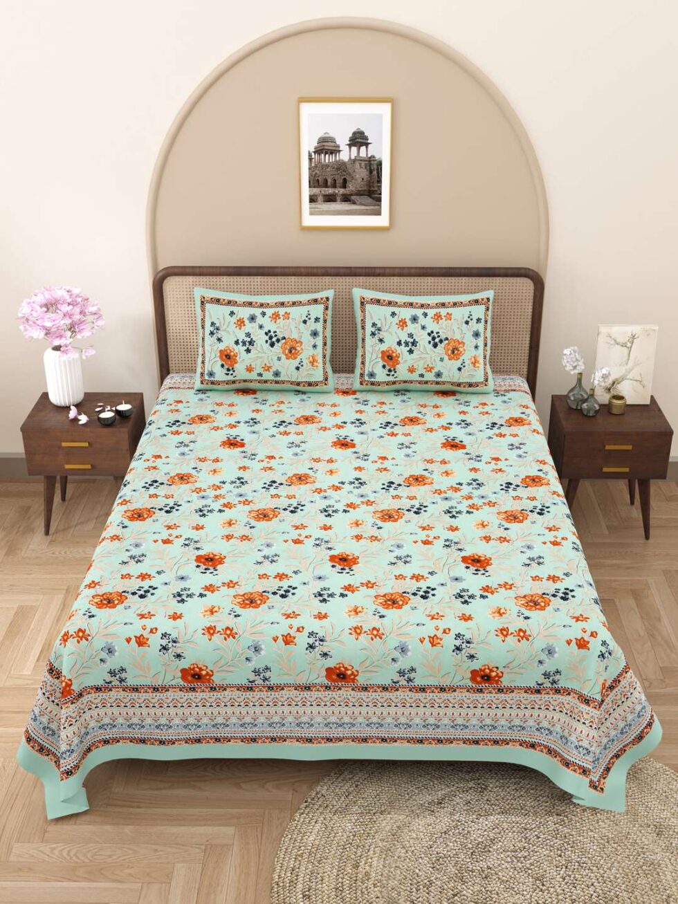 100% Pure Cotton Traditional Printed Bedsheet for Double Bed King Size Bedsheet with 2 Pillow Covers