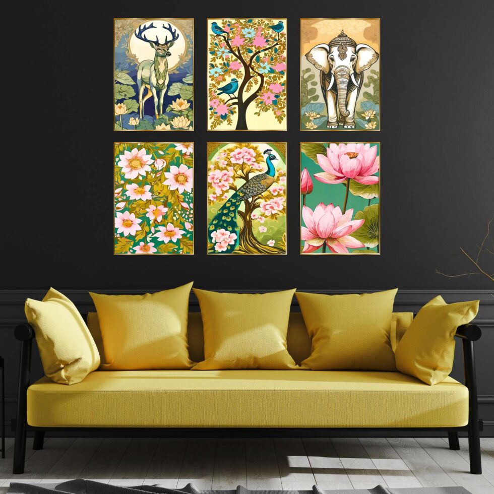 Set of Six Wall Paintings for Wall Dacoration Golden Framed Wall Paintings for Living Room & Bedroom Wall Art for Home Decoration & Office Wall Décor (17×13 inch CH-GD6-7)